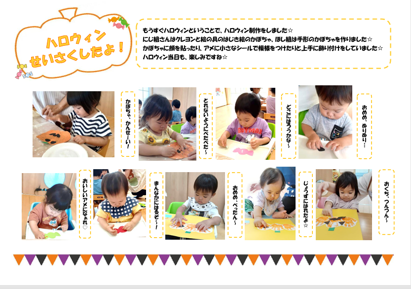 おばけかぼちゃのできあがり〜🎃(0,1歳児)