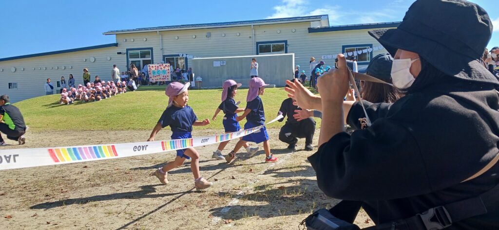 みどり組さんは、園庭を一直線に、お家の人が待っているゴールまで駆け抜けました😊