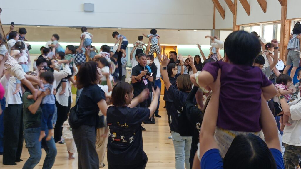 おうちの人に「たかい たか~い」をしてもらったり、アンパンマンのように空を飛んでみたり、おうちの人も子どもたちも、とてもいい笑顔が見られました😊