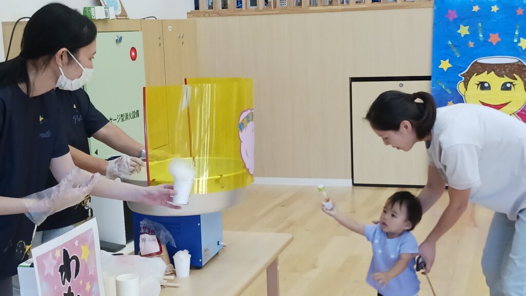 遊戯室には、フォトスポットやわたあめのコーナーがあり、わたあめの甘い匂いに誘われて大盛況でした!!