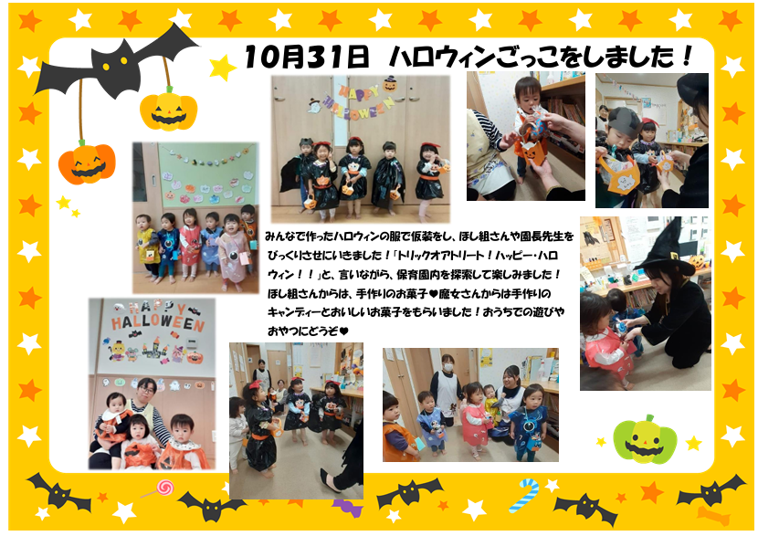 ブログ 2025.10.31 by mrai.yumenomori ハッピーハロウィン🎃 鹿島台保育園さんから畑で育てていたかぼちゃを分けていただき、かわいく仮装しました。園児や保護者の方を玄関でお出迎え。楽しいハロウィンの雰囲気を盛り上げてくれました!!鹿島台保育園のみなさん、ありがとうございました!