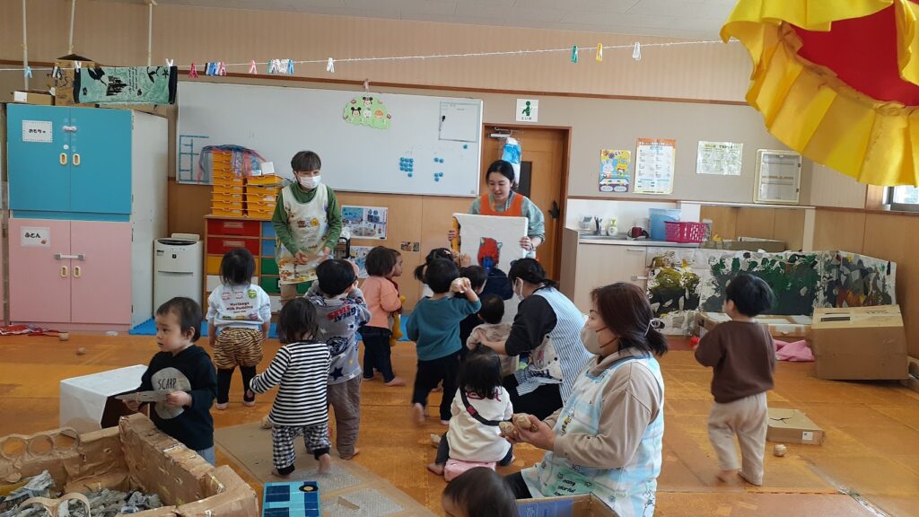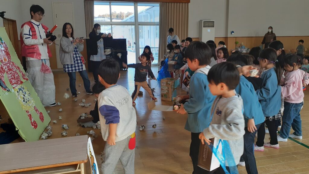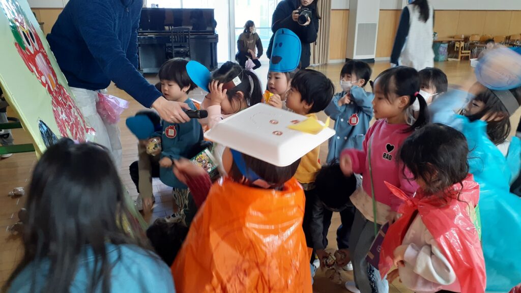 ブログ 2026.2.24 by 社会福祉法人みらい 豆まき会の様子 2月3日(火)に豆まき会がありました。 鬼にたくさんの豆を投げました。 お遊戯室でも鬼に向かって一生懸命豆をまきました。 みんな無事に鬼を退治し、自分の中に福の神を呼ぶことができました。
