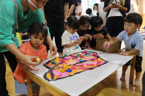 0歳児から3歳児のスポーツフェスティバルがあり、たくさん体を動かしました。 0.1歳児はお家の方と一緒に新聞紙のプールや電車ごっこなど好きな遊びを楽しみました。 2歳児は少し難しいサーキットに挑戦!真剣な表情やできたとき...
